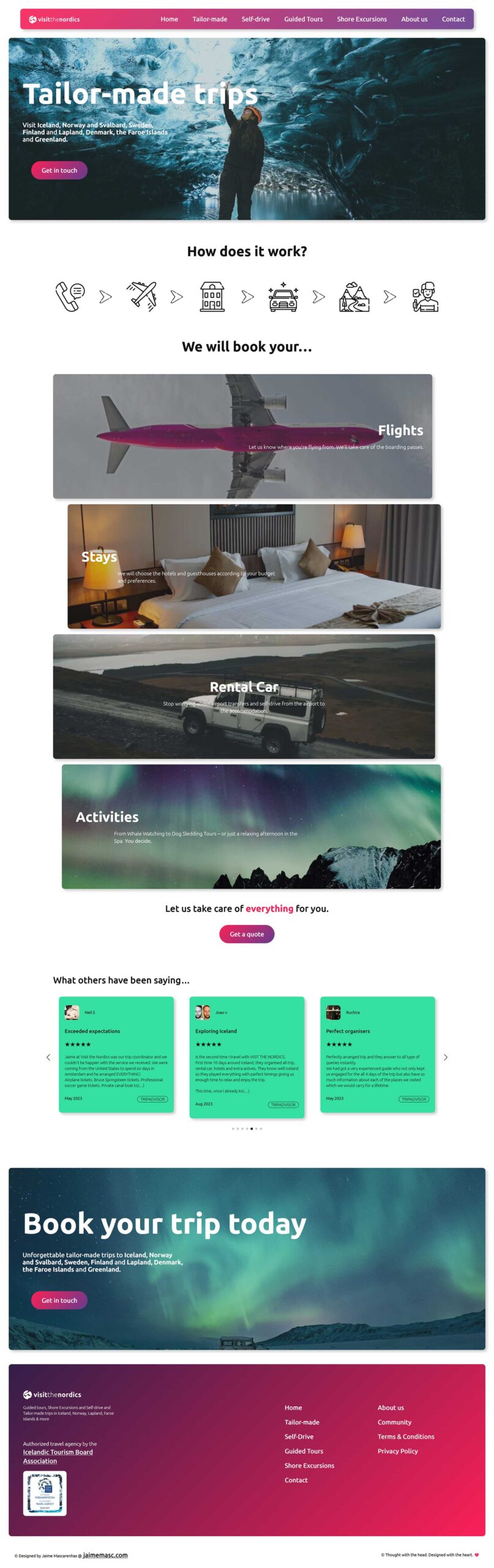 The navigation system features a translucent floating menu bar and fade animations make the website look fluid and modern. All of those are mobile-optimized.