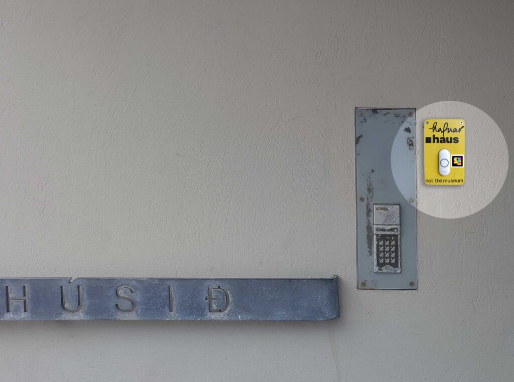 Hafnar.space is a small gallery on the back of the Wasabi Room, at hafnar.haus. Its wide doors make it accessible for most, and its due to its small dimension it does not require the installation of tactile paths.